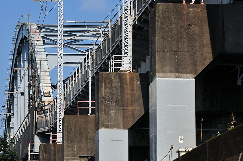 汗だくになって絵1点を撮影した後に仕事先の事務所へ向かう途中、先日来気になっていた光景を納めました。馬込架道橋は塗装の塗り替えのため、現在足場づくりが進んでいます。
